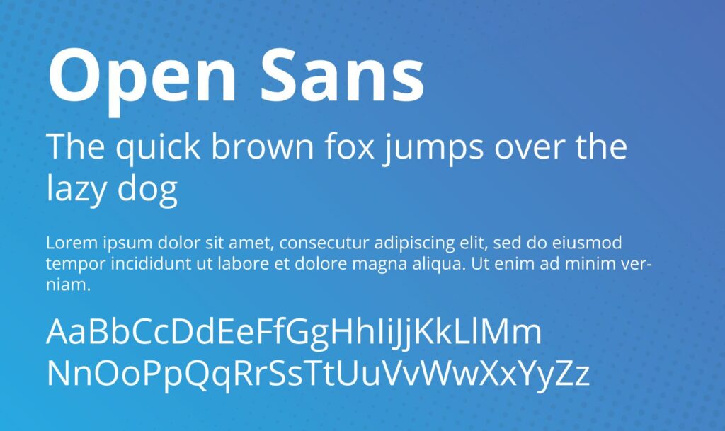 Open Sans is a minimal, sans serif font best suited to paragraphs and smaller text.